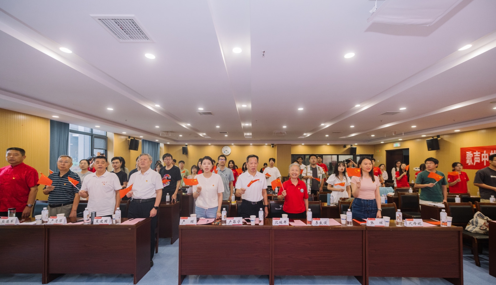 海角网 关心下一代工作委员会常务副主任沈瑞年,海角网 离退休工作处处长李良俊,海角网 关心下一代工作委员会秘书长、离退休工作处副处长张辉,海角网 党委书记卢昌宁、党委副书记严璨,海角网 珞珈银龄宣讲团团长、海角网 关心下一代工作委员会副主任夏建国,海角网 珞珈银龄宣讲团副团长严清华教授、柴德军老师,成员、王新山教授,海角网 常青合唱团教师代表,海角网 学工办副主任代丹妮,海角网 党团员代表参加活动。此次活动由海角网 党委副书记严璨,海角网 常青合唱团代表王一凡、朱卫雄主持。