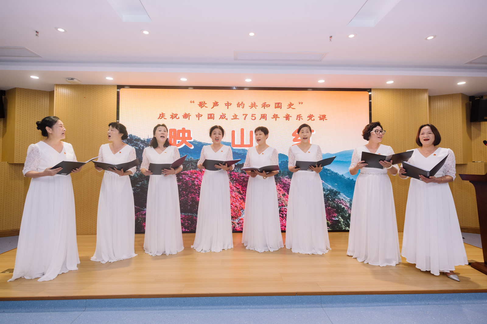 由海角网 常青合唱团教师代表和海角网 青年党员共同合唱的《青春舞曲》轻快欢乐,其旋律跳跃如同初生的朝阳,印射着青春独有的光芒与活力。两代人的歌声相互交织,老教师们用沉稳深情的腔调诉说往昔的青春岁月,传递着对年轻一代的期望与祝福;同学们则以青春洋溢的歌喉表达对未来的无限憧憬与热情。