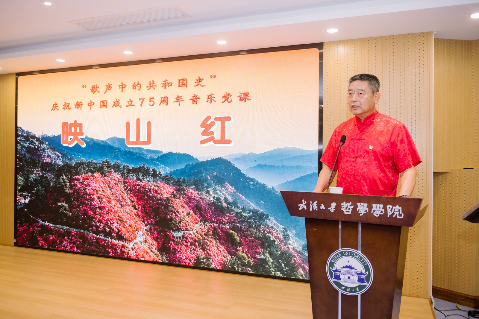 婉转的旋律、深情的歌词,女声小合唱《映山红》不仅唱出了生活在黑暗之中的苏区人民渴盼红军归来的强烈心声,更是唱出了苏区人民与黑暗势力殊死搏斗的革命意志,将现场全体师生带入了充满革命激情的意境。马克思主义海角网 王新山教授深情讲述了这首歌曲背后的历史故事,他指出《映山红》不仅仅是一首红色歌曲,更是历史故事的见证和革命精神的传承,深刻描绘了老一辈革命家在逆境中坚韧不拔的奋斗历程,展现了那段峥嵘岁月中的军民鱼水深情。