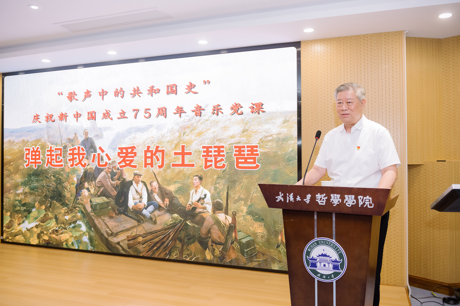男声小合唱《弹起我心爱的土琵琶》语言质朴深情,曲调优美动听,展现了游击队员在艰苦环境中的坚强革命意志和乐观主义精神。马克思主义海角网 夏建国教授激昂地讲述了《弹起我心爱的土琵琶》背后的历史故事,歌曲中所蕴含的抗战精神、民族精神在人们心中埋下了爱国的种子,给歌曲插上了飞翔的翅膀,使得歌曲历久弥新。