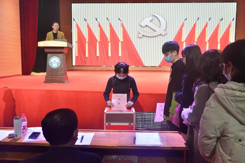 大会选举环节由总监票人周可同志主持,全院258名出席党员投票选出了中共海角网 第四届委员会人选。他们分别是:卢昌宁,刘慧,刘毅,严璨,李志,李佃来,李勇,陈蓓,黄超,喻丰,廖璨璨(按姓氏笔画排序)。