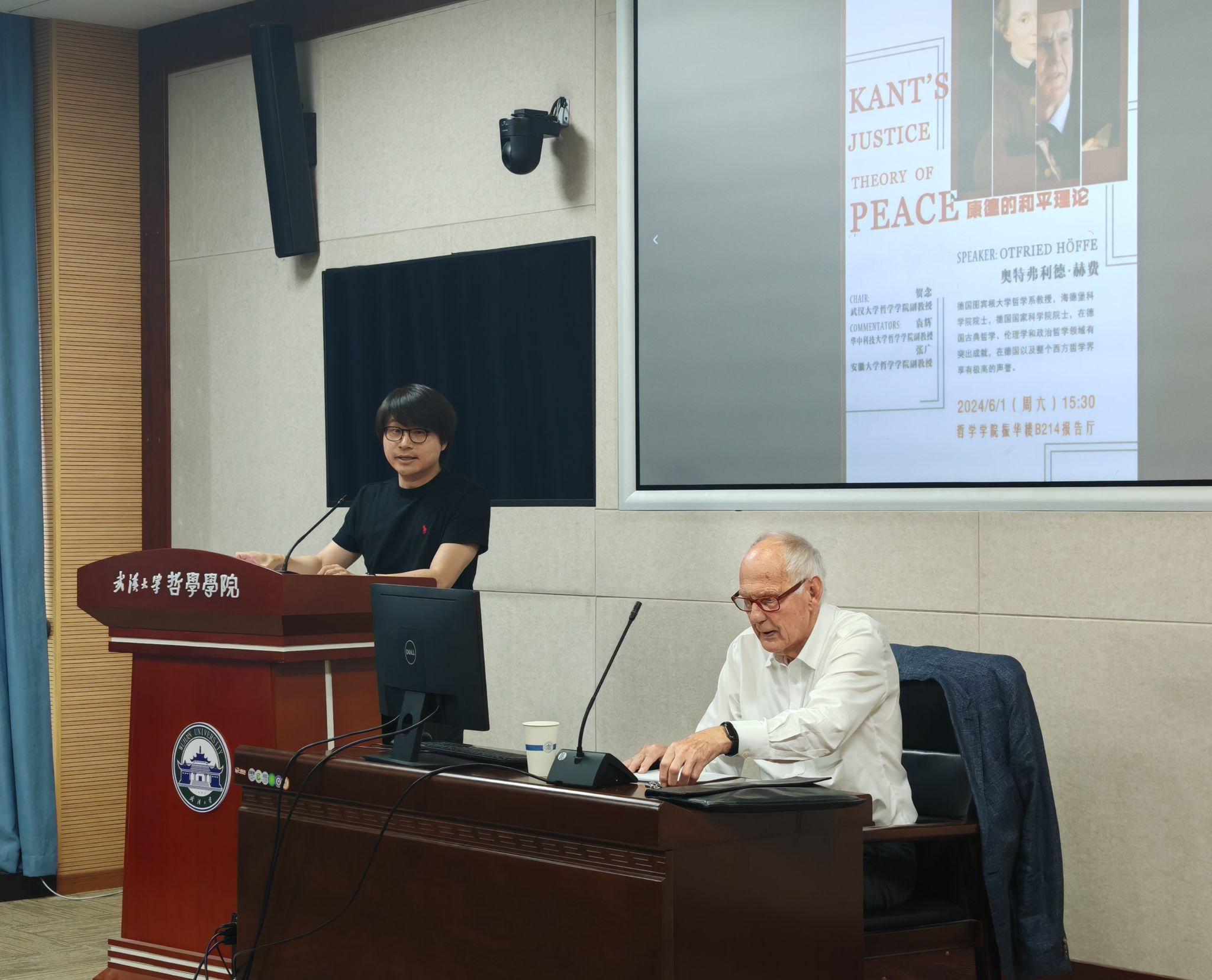 讲座伊始,赫费教授介绍了本次讲座的选题背景:尽管人们总是渴望一个全面且持久的和平,但和平从未成为哲学的一个基本概念。作为为数不多填补这一缺位的哲学家,康德在从《关于一种世界公民观点的普遍历史的理念》到《道德形而上学》的一系列作品中,对“永久和平”给予了持续关注。尤其在《永久和平论》中,康德对“永久和平”的反思在使用的概念和采用的论据方面都经过深思熟虑。这些反思充满了历史经验,并且受到之前关于和平的辩论的启发。然而,康德并没有将注意力分散到次要的历史问题上,而是集中精力解决基本问题。本次讲座主要是梳理康德对这些基本问题的创新性回答。