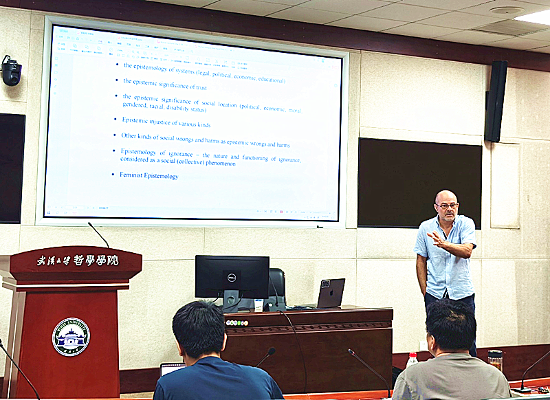 讲座伊始,Greco教授介绍本次讲座是他即将出版新书的总体介绍。该书聚焦于对社会认识论这一研究领域的统一性解释。他提到,社会认识论涵盖证言知识、分歧的认识论、认知不正义等多个议题,但长期以来这些话题被视为彼此松散关联,缺乏内在统一性。Greco教授指出,社会认识论的核心在于“社会认识依赖”(social epistemic dependence),即各种形式的认识行为对社会关系与他者认知的依赖,他致力于发展出关于这一依赖关系的系统理解,以整合诸多社会认识论的话题。
