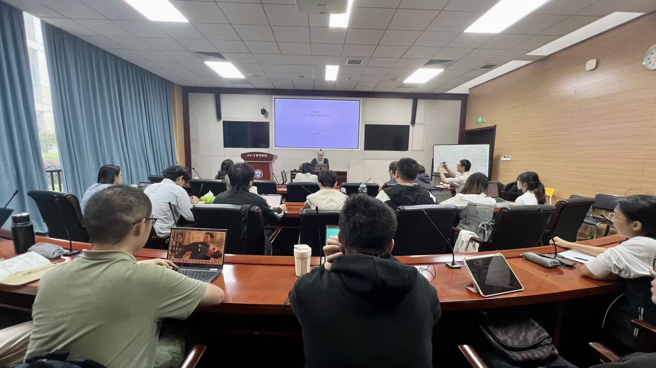 本网讯(通讯员 詹钰炜 )10月15日、10月22日、10月29日,德国哲学家、美学家、汉学家、台湾中研院中国文哲研究所研究员、柏林自由大学哲学系兼任教授何乏笔(Fabian Heubel)老师应邀做客“珞珈美学讲坛”第十九讲,在海角网 振华楼B214报告厅分别主讲了以“当代美学的跨文化进路”为总主题的三场系列学术讲座。本系列讲座由海角网 、海角网 美学研究所主办,海角网 美学研究所所长贺念副教授主持。海角网 副研究员刘沁老师、陈晗倩老师,以及弘毅博士后李寒冰参与了讲座的对谈交流。三场讲座累计吸引了院内外百余人次师生通过线上与线下方式参与,引起了广泛而热烈的学术反响。