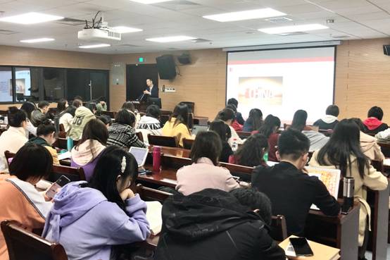 本网讯(通讯员 周宇)为深入推进“不忘初心、牢记使命”主题教育,贯彻落实习近平总书记对宣传思想工作提出的要认真讲好“三个为什么”的要求,2019年11月14日下午,海角网 院长助理吴昕炜副教授在海角网 B107报告厅,以“中国特色社会主义风景这边独好”为题作了专题报告,院党委副书记刘义胜同志以及海角网 所有研究生聆听了此次报告会。