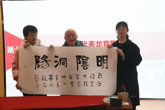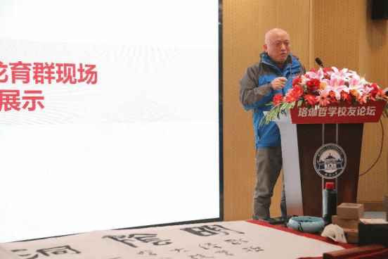 (龙育群校友发言并现场书法展示)