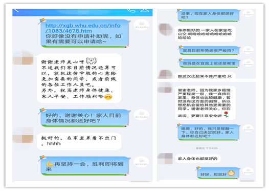 教职工担使命。辅导员队伍建立起线上健康日报制度,每天及时汇总学生健康状况,同时全面排查在汉学生情况,并组织落实临时困难补助政策,跟踪处理学生疑似病例和心理危机等特殊情况;研究生导师在疫情期间密切关注所带学生健康状况,定期指导学生学业,重点指导毕业生论文;在关心留校学生生活方面,定期与所有留校学生通话,关心生活需求和心理健康情况。