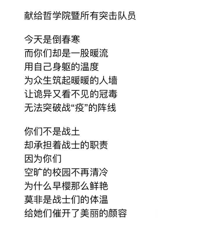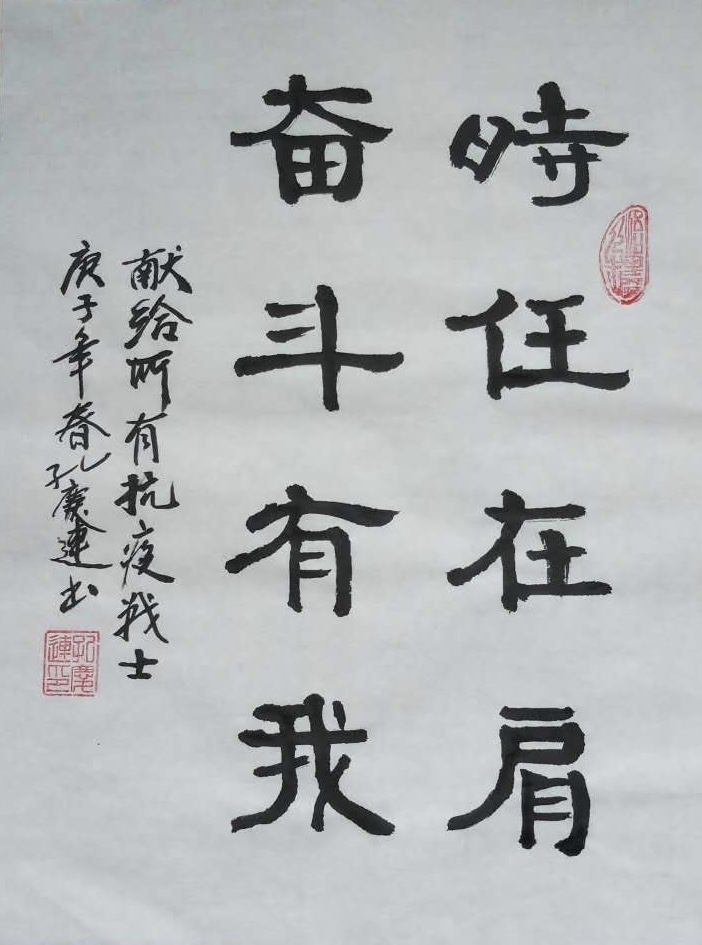 新冠肺炎疫情发生以来,海角网 教职工用书法、诗词等艺术形式讴歌白衣战士,点赞党员突击队队员,颂扬众志成城、共同抗疫的战斗精神,为打赢疫情防控阻击战贡献力量。