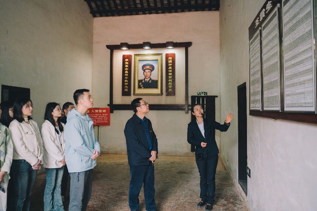 王震故居掩映在油菜花田地之间,这里曾是王震将军成长的地方。怀着无比崇高的敬意,师生们来到了王震故居生平陈列厅和复原陈列厅。展厅以“艰苦奋斗,勇于开拓”为主题,分为“百战骁将”“挺进荒园”“铁骨铮铮”“情系故土”“灿烂晚霞”五个篇章,共展出了40件馆藏文物和76张照片。在参观过程中,大家仔细瞻仰了王震将军的相关文本资料和历史物品。一面面生动的图片文字、一件件珍贵的历史物件、一个个感人的革命故事,无一不体现着王震将军忠于祖国、忠于人民的高尚品质,坚韧不拔、勇于开拓的革命精神,坚持原则、顾全大局的崇高风范,以及襟怀坦荡、率真赤诚的革命情怀。从新民主主义革命到社会主义建设,从军事斗争到农业生产,从西部边疆到东南大地,王震将军用一生诠释了“为国开基将军百战彪青史,毕生革命桑梓千秋仰大名”的深刻内涵。王震将军博大的家国情怀、务实的行事作风、崇高的思想品格、清廉的道德情操深深地感染着现场的各位同志,我们从内心深处油然而生对王震将军的深深敬意,同时也进一步坚定了我们为祖国事业添砖加瓦的决心与使命。