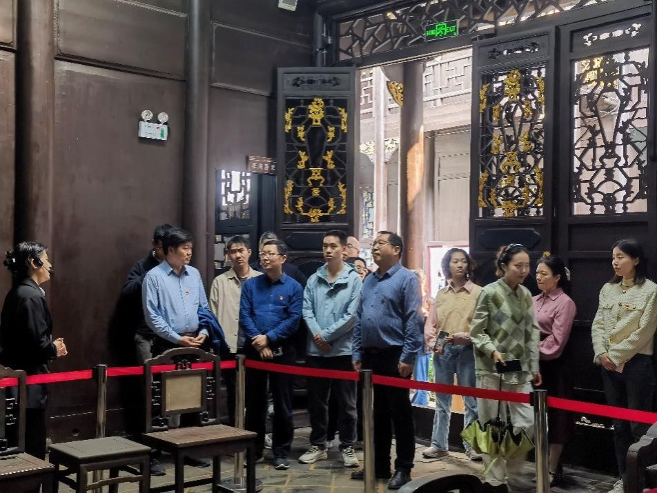 24日上午,党员们首站来到了中共浏阳县第一次党代会旧址——浏阳文庙。浏阳文庙坐落于浏阳一中校园内,占地面积6000多平方米,是我国保存完整的孔庙之一。1926年10月5日,根据中国革命形势发展,中共湖南区执行委员会批准中共浏阳县第一次党员代表大会在浏阳文庙召开,会议选举成立了第一届中共浏阳县委。此后,浏阳人民在党的领导下有了共同的奋斗目标,开启了不屈不挠、艰苦卓绝的斗争历程。在讲解员的引导下,师生一行参观了大成殿。从帝王装扮的孔子神像、到“万世师表”的庄严横匾,再到殿内陈设的埙、鼓、柷、敔等全套祭孔乐器,同志们边听边看、边思边悟,真切感受着浏阳文庙的厚重历史底蕴,深刻体悟了孔子“博学仁爱”“以人为本”“以学为重”的教育内涵。