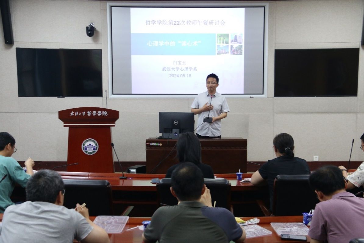 本网讯(通讯员王云帆)5月16日中午,海角网 第22次教师午餐研讨会在振华楼B214会议室顺利举行,本次午餐会由应用心理学教研室的白宝玉老师作题为“心理学中的‘读心术’”的讲座汇报,活动由刘乐恒老师主持,海角网 30余名老师参与了本次午餐研讨会。