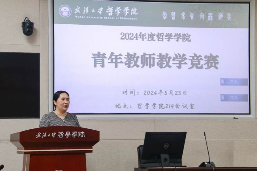 在教师展示环节,7位参赛教师按赛前抽签确定的展示顺序完成15分钟的限时的课堂教学展示。参赛教师结合自身研究专长,从“模态逻辑的超滤扩张”到“福柯的新自由主义批判”,从齐物论、逍遥游的先秦原典到马克思与人工智能时代的主体性问题、全球正义,参赛教师围绕各自教学中具象化的知识点,紧扣教学目标,运用现代与传统相结合的教学手段,生动地呈现教学内容。