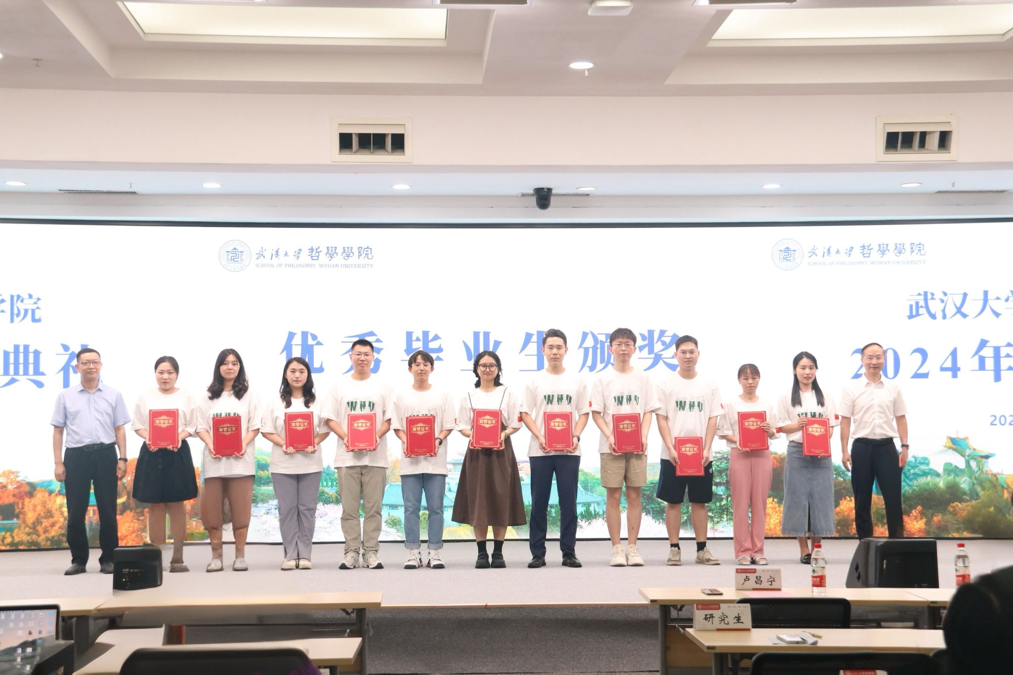 在2024届毕业生中,涌现出多名优秀毕业生。优秀学子代表上台领奖并合影留念。当毕业生们接过这份象征着荣誉和成就的证书时,他们的脸上洋溢着灿烂的笑容,眼中闪烁着对未来的憧憬。