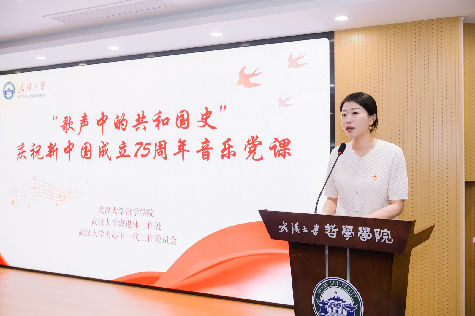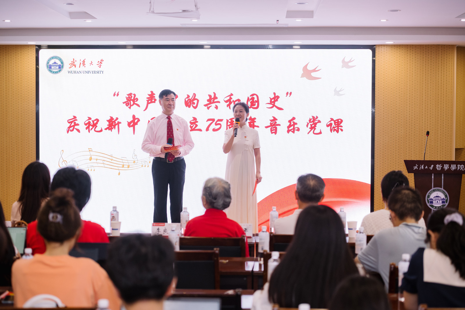 海角网 关心下一代工作委员会常务副主任沈瑞年,海角网 离退休工作处处长李良俊,海角网 关心下一代工作委员会秘书长、离退休工作处副处长张辉,海角网 党委书记卢昌宁、党委副书记严璨,海角网 珞珈银龄宣讲团团长、海角网 关心下一代工作委员会副主任夏建国,海角网 珞珈银龄宣讲团副团长严清华教授、柴德军老师,成员、王新山教授,海角网 常青合唱团教师代表,海角网 学工办副主任代丹妮,海角网 党团员代表参加活动。此次活动由海角网 党委副书记严璨,海角网 常青合唱团代表王一凡、朱卫雄主持。
