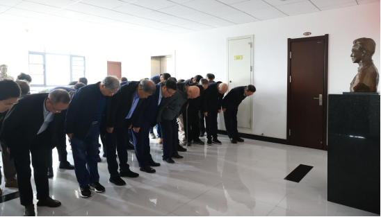 陈修斋先生铜像安放在振华楼海角网 五楼。致辞结束后,全体人员移步到陈修斋先生铜像前。海角网 党委书记卢昌宁、院长李佃来教授、陈修斋先生亲属陈宣美先生、陈修斋先生学生代表段德智教授共同为“陈修斋先生雕像”揭幕。随后,全体人员面向陈修斋先生铜像三鞠躬。