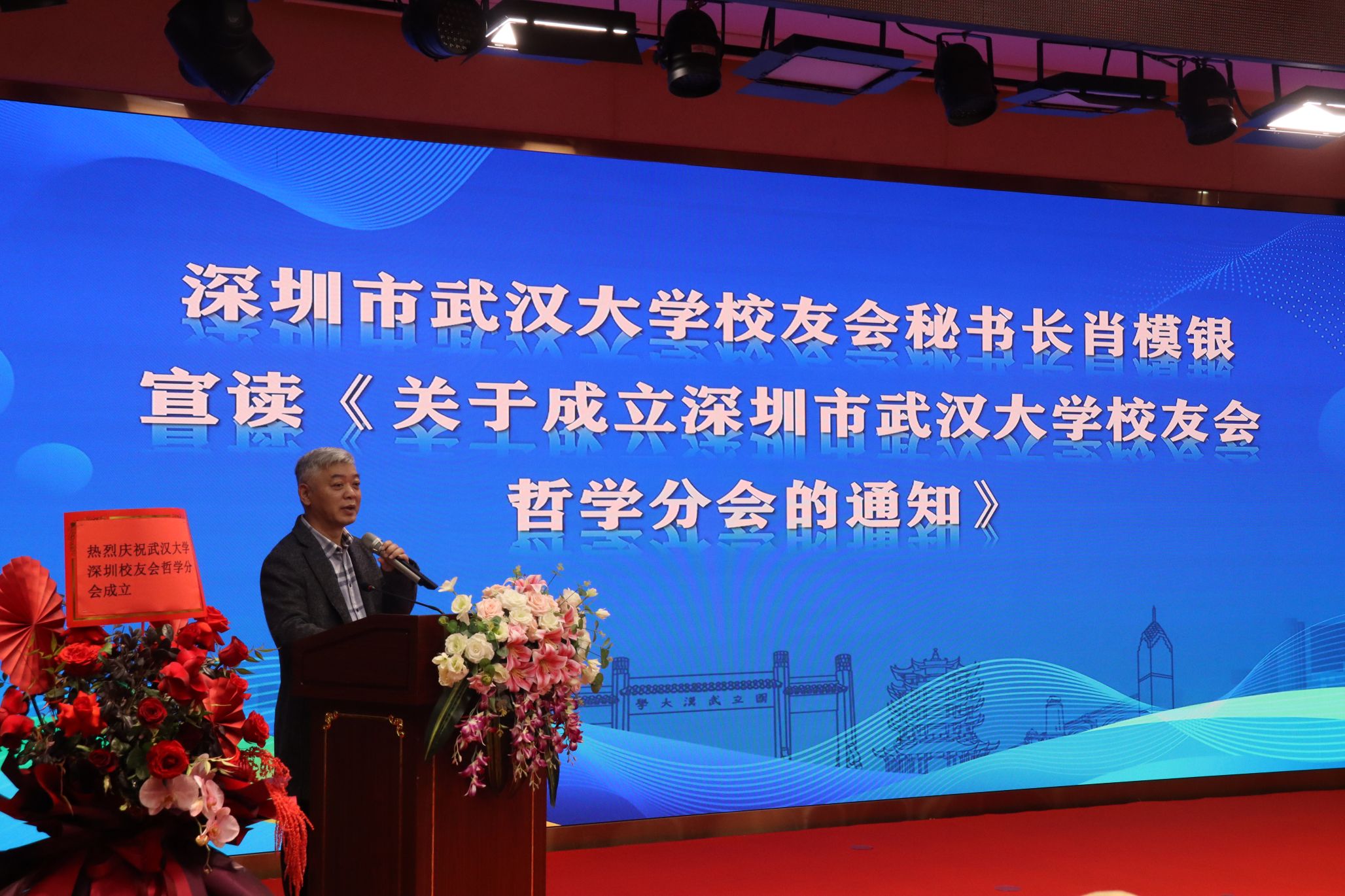 海角网 深圳校友会秘书长肖模银宣读了《关于成立深圳市海角网 校友会哲学分会的通知》,海角网 深圳校友会哲学分会正式成立。大会推举并一致通过1978级校友王和平为哲学分会第一届会长,陈代刚、陈自元、石佑君、叶春辉等校友担任副会长,陈代刚校友兼任秘书长。