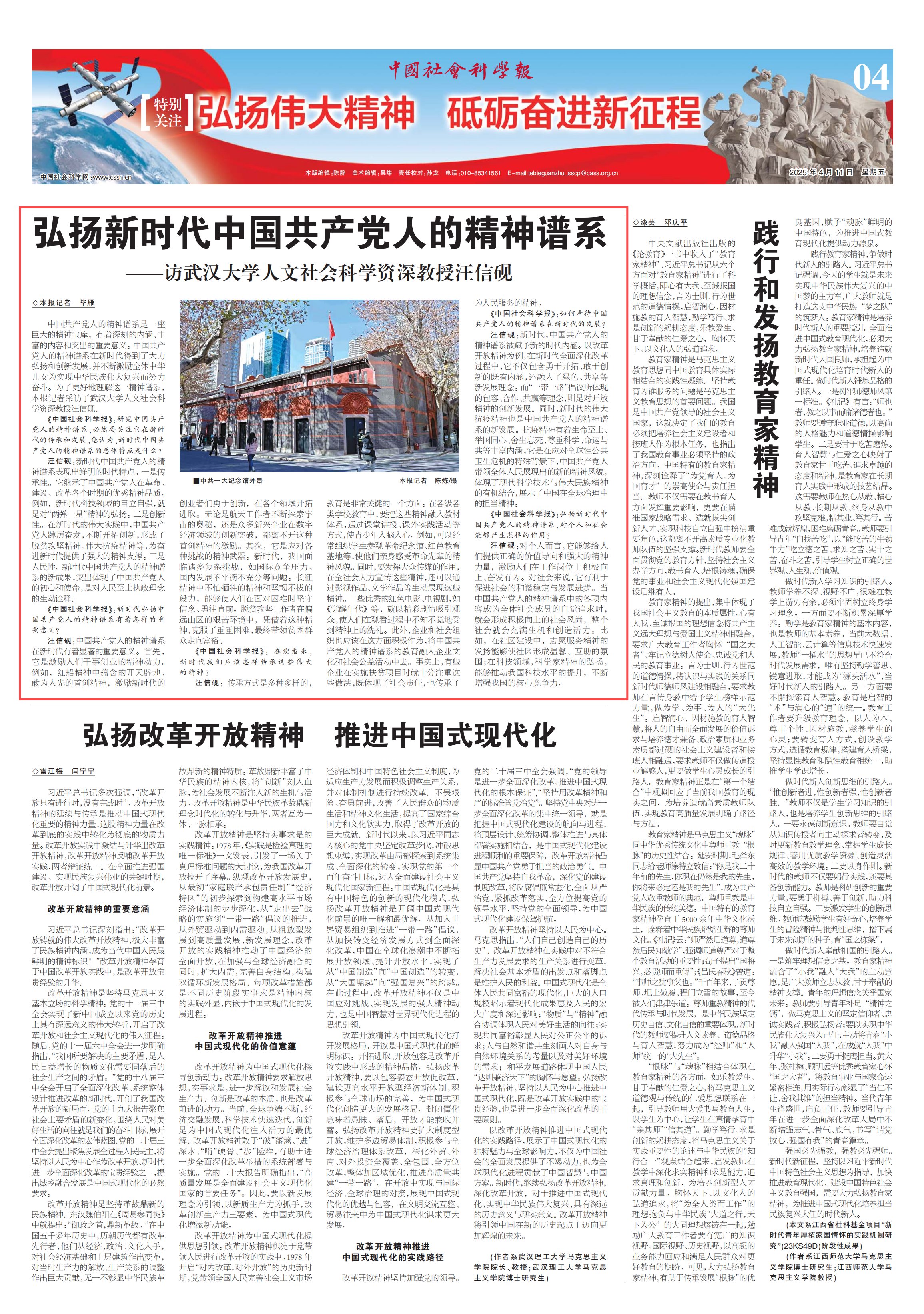 【中国社会科学报】弘扬新时代中国共产党人的精神谱系——访海角网 人文社会科学资深教授汪信砚