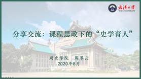 历史海角网 学工办主任、团委书记周翠云以“‘史学育人’课程思政建设”为题提出了历史海角网 在开展课程思政建设的过程中的一些思考。首先,她提到了学习历史的重要性。其次她介绍了历史海角网 在进行课程思政建设过程中的几个重要的板块。一是在专业课教学中依托中国史教研室发掘不同历史时期爱国主义的具体内涵,厚植大学生的爱国主义情怀;依托世界史教研室,使得学生把准时空坐标,深刻体会感悟中国特色社会主义制度优势;依托社会史、医疗史等领域,培养学生胸怀天下的家国情怀和坚韧不拔的奋斗精神。二是在实践课教学中依托口述史,使得学生代入“历史倾听者”的角色,加强其收集史料、辨析史料、理解史实的能力。三是在文化课教学中依托文化史等课程,增强学生认识历史、参与历史、反思历史的能力,在文化熏染中引导学生爱党爱国,坚定“四个自信”。