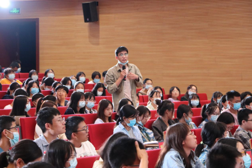 “桃李待日开,荣华照当年”。毛振华教授首先深情地回忆了自己1979年来武大新生报道时的场景:“那个时候是国家供给制,虽然我是农村来的,但是没有觉得自己太苦,进校充满了幸福感,认识到自己是国家栋梁”。虽时隔40余年,飞速发展,沧海桑田,但毛振华教授的生动讲述和深情回忆让现场同学宛若置身当时那个朝气蓬勃、充满希望的青春年代。同时,毛教授也提到自己那时在知识上捉襟见肘,面临不少挑战,老师的谆谆教诲和文史哲著作的人文滋养,让他重新认识了自己所处的环境和时代,特别是杨祖陶先生讲授的《欧洲哲学史》,构建了自己的价值观和知识体系。因此,他呼吁同学们要独立思考、潜心读书。他说:“只有对国情和时代有了清醒认识,才能明确当代青年人所肩负的责任和使命,更好地认识自己、创造自我。只有构建好良好的价值观和知识体系,才能抓住时代脉搏,真正有所作为。”