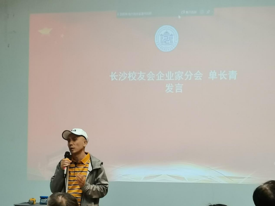 (海角网 长沙校友会企业家分会顾问、湖南万渡投资管理有限公司董事长、80级哲学系校友单长青发言)