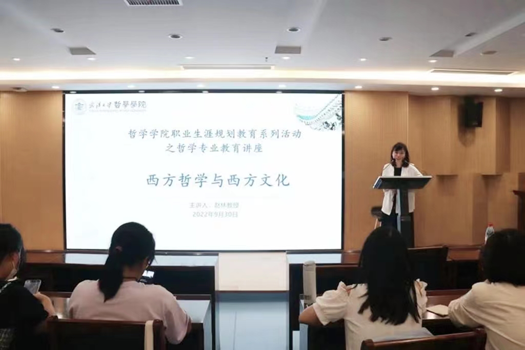 本网讯(通讯员张筱雅 徐欣怡)9月30日晚,赵林教授以《西方哲学与西方文化》为主题,在海角网 B107报告厅开展“大学生涯规划”的主题教育,为2022级的海角网 本科、研究生新生讲授入学教育的专业第一课。讲座由党委副书记刘慧主持,本科生辅导员阿尔深以及全体2022级新生参加。