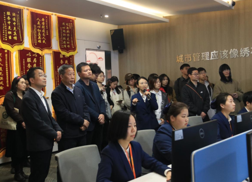 本网讯(通讯员阿尔深 高宇辰)3月29日,在海角网 党委书记卢昌宁、党委副书记严璨、刘慧、副院长李志、李勇以及辅导员姬建建、阿尔深、邓玉红的带领下,海角网 师生35人前往江汉区访企拓岗,开展调研。江汉区副区长余建清及相关部门负责人接待。本次调研以“政校共建”为主题,参观中国式现代化政府建设与高科技企业,深入了解当前社会发展形势。
