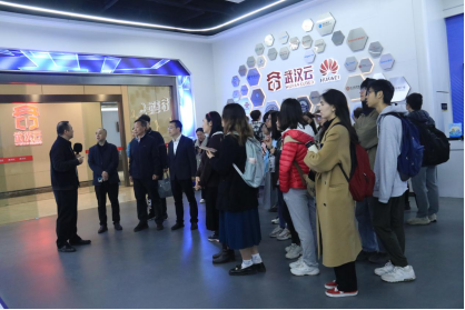 在调研第一站武汉云启智慧展厅,师生们了解到“武汉云”的项目背景以及它在新型智慧城市建设中发挥的重要作用。作为全国首个“城市一朵云”,“武汉云”采取企业投资、政府购买服务方式,由华为公司和武汉产业投资发展集团共同投资建设,2021年9月4日,“武汉云”正式启用,通过构建“城市运行管理中心、数字经济赋能中心、数字人才培养中心、科技创新孵化中心”四大中心,全面赋能政府管理、惠民服务、城市治理、产业创新、生态宜居五大重点应用领域,为新型智慧城市建设提供有力支撑。据介绍,海角网 作为华中地区的重点高校,是武汉云的重点合作伙伴,为武汉云提供了很多人才和技术上的支持。同学们听完讲解心潮澎湃,期待自己将来能参与到武汉云的建设中,为打造数字武汉新名片贡献自己的一份力量。