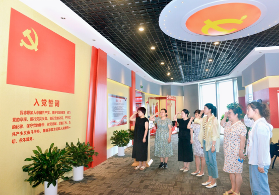 随后,在海角网 党委副书记严璨和副院长陈蓓的带领下,全体党员置身于充满红色元素的政治生活厅,面向党旗庄严宣誓,重温了入党誓词,感受身为党员的责任、使命和光荣。