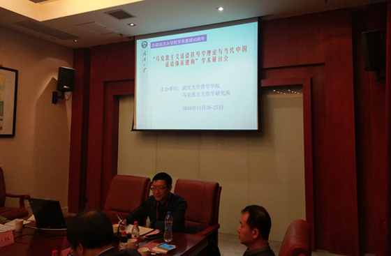 11月27日,海角网 、马克思主义哲学研究所主办的“马克思主义话语符号学理论与当代中国话语体系构建”学术研讨会在武汉楚源蓝天花园酒店成功举行。此次学术研讨会是海角网 哲学学科重建60周年系列庆祝活动的组成部分。来自复旦大学等高校及海角网 的专家学者及研究生30多人出席了会议。