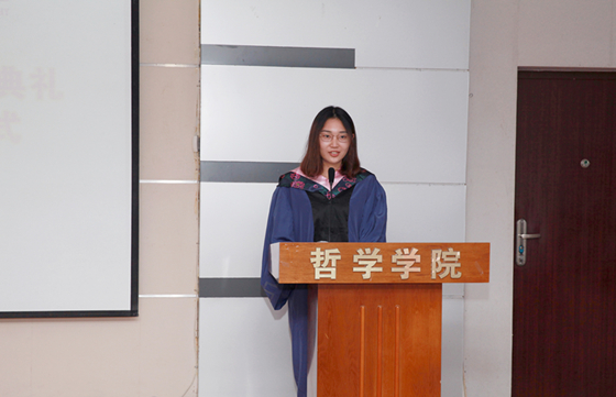 “哲院给了我这样的信念:矛盾无时不在又无处不在。在无穷无尽的矛盾面前,要坚信新陈代谢不可阻挡;要坚信有问题则必有答案;要坚信真善美必将战胜假恶丑。”研究生代表2014级马克思主义哲学专业硕士生李禾风感念海角网 带给她的教诲。她向所挚爱的母校和师长们承诺:我将坚守你们镌刻于我心中的那些大美,不离不弃,直到永远;我将秉持你们为我塑造的那些信念,念兹在兹,奉行不渝。