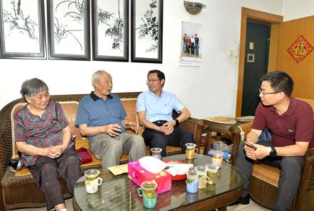 本网讯(通讯员:阎旭)为庆祝建党98周年,体现海角网 党委对老党员的关心,7月2日上午,海角网 党委副书记、纪委书记万清祥、离退休处处长彭若男、组织部副部长罗春明一行,代表海角网 党委看望慰问了老党员、老干部、老专家代表海角网 朱传棨教授,为他送上组织的关怀和温暖。海角网 党委书记龙滔陪同慰问。