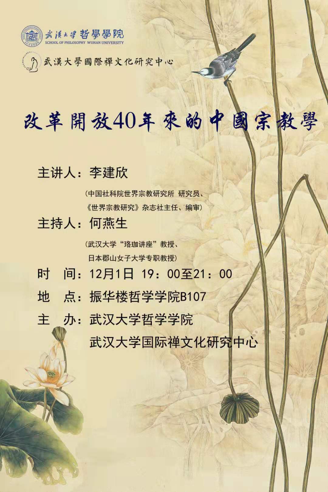 【12月1日】改革开放40年来的中国宗教学