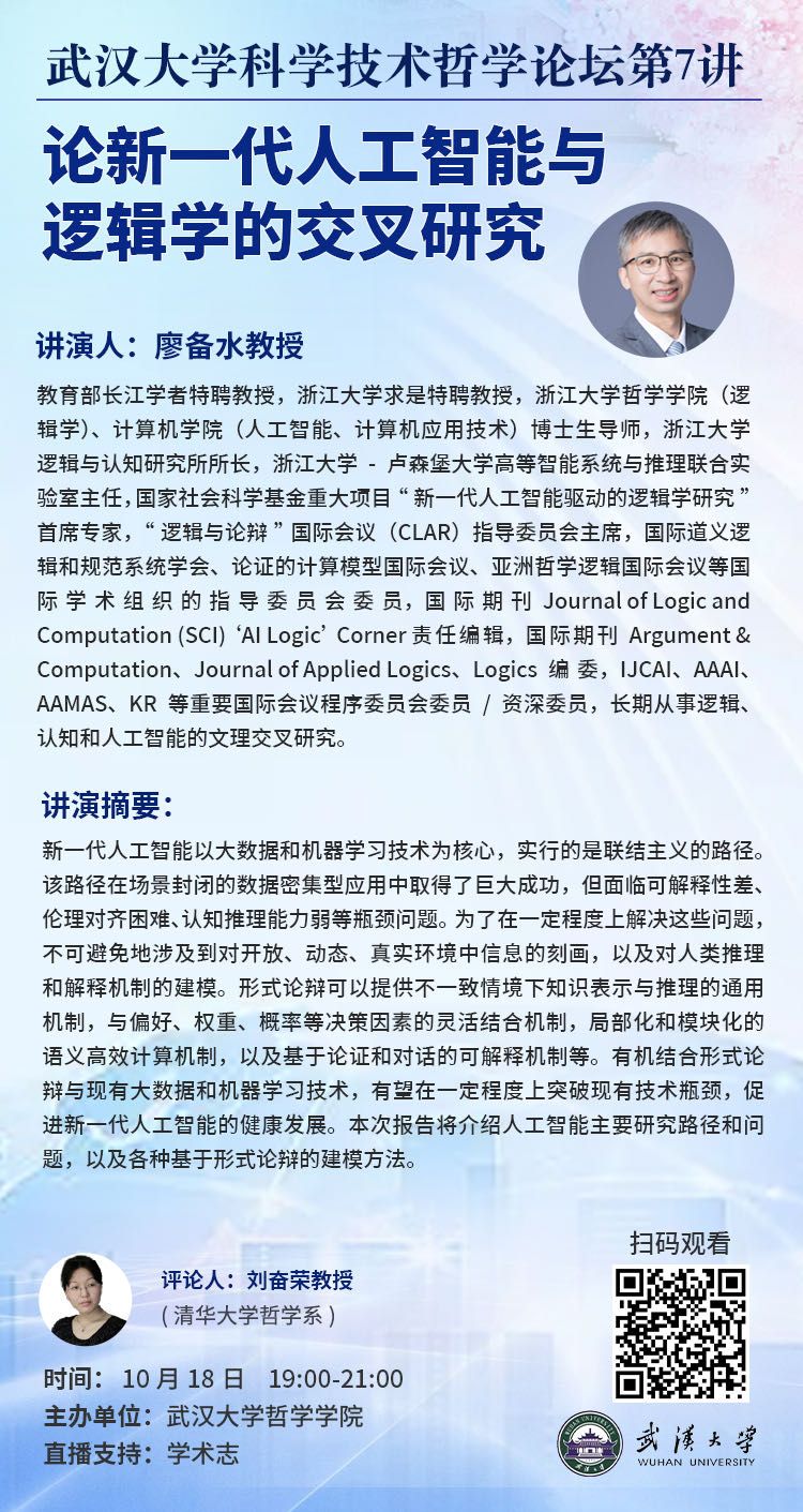 【10月18日】海角网 科学技术哲学论坛第7讲:论新一代人工智能与逻辑学的交叉研究