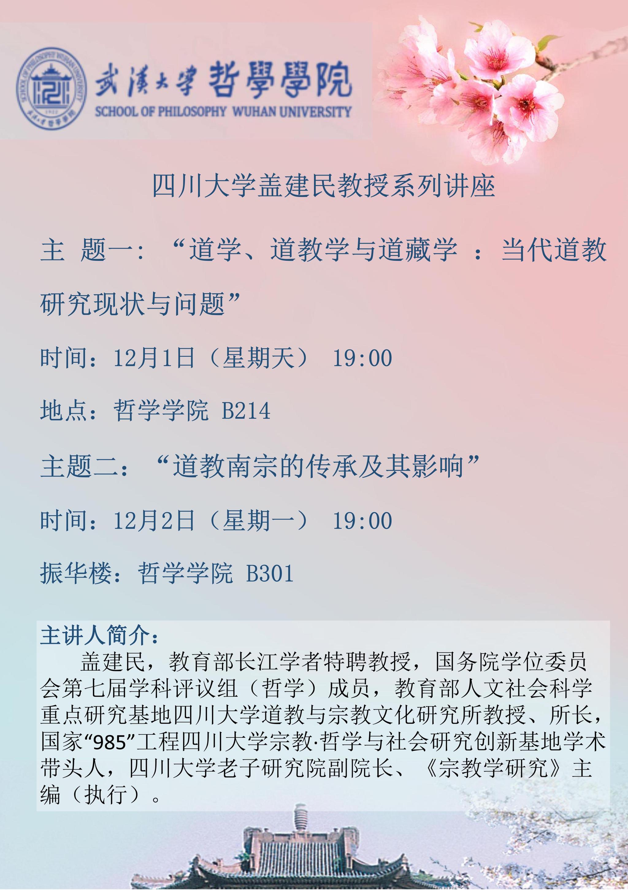 【12月1日—12月2日】四川大学盖建民教授系列讲座