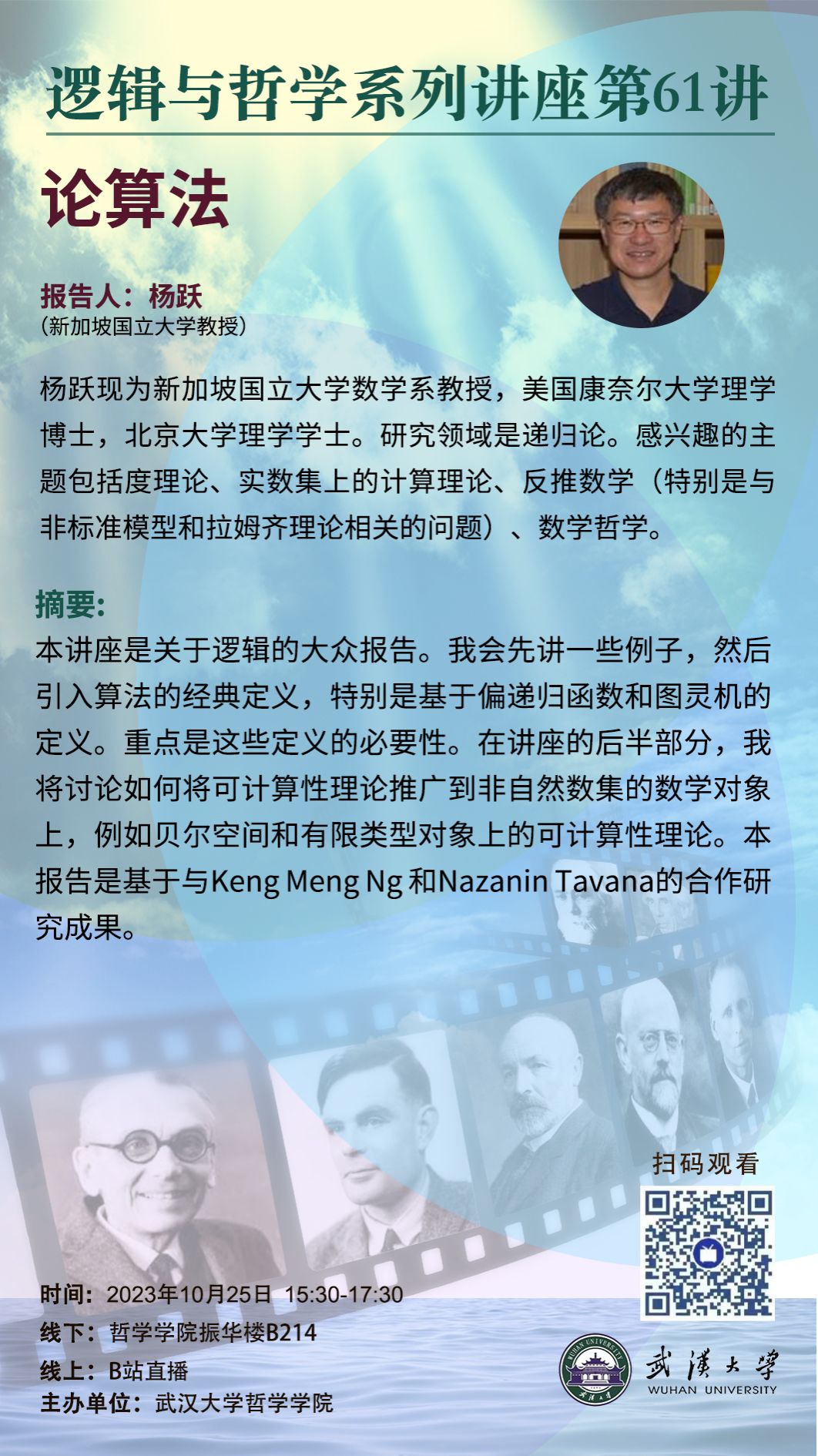 【10月25日】论算法——逻辑与哲学系列讲座第61讲