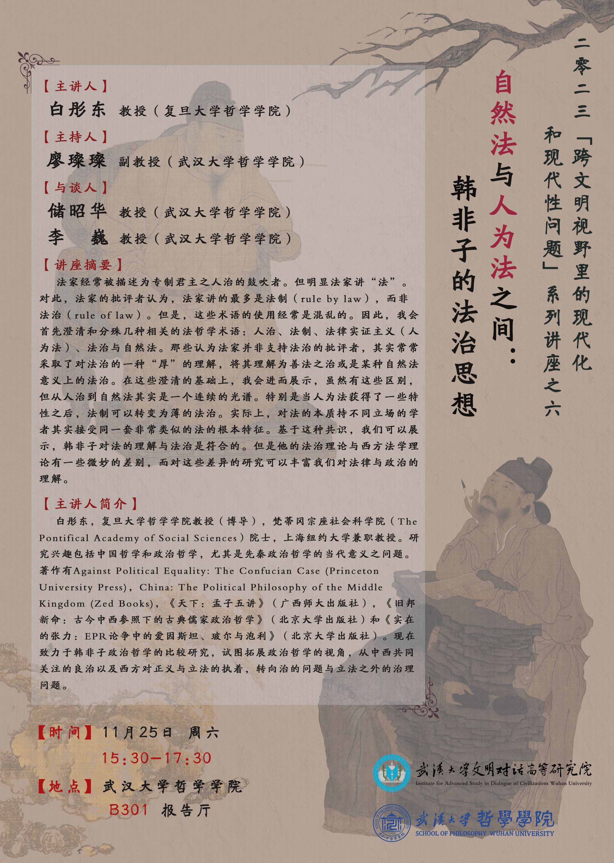 【11月25日】自然法与人为法之间:韩非子的法治思想——二零二三「跨文明视野里的现代化和现代性问题」系列讲座之六