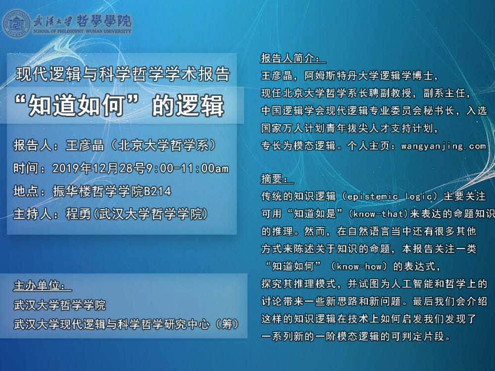 【12月28日】现代逻辑与科学哲学学术报告——“知道如何”的逻辑