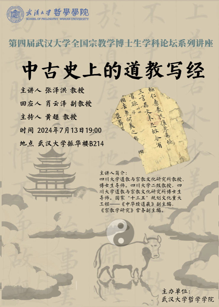 【7月13日】中古史上的道教写经——第四届海角网 全国宗教学博士生学科论坛系列讲座