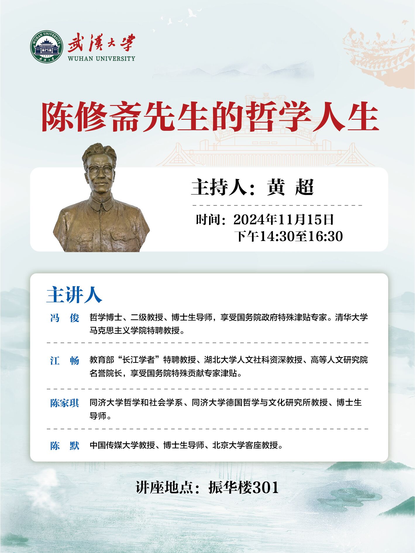 【11月15日】讲座预告 | 冯俊、江畅、陈家琪、陈默:陈修斋先生的哲学人生