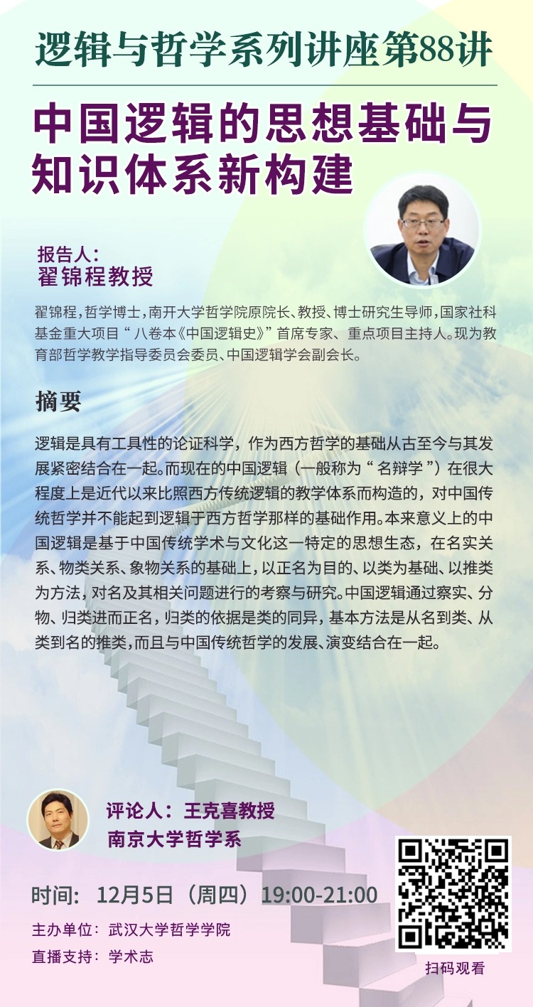 【12月5日】逻辑与哲学系列讲座第88讲|翟锦程:中国逻辑的思想基础与知识体系新构建