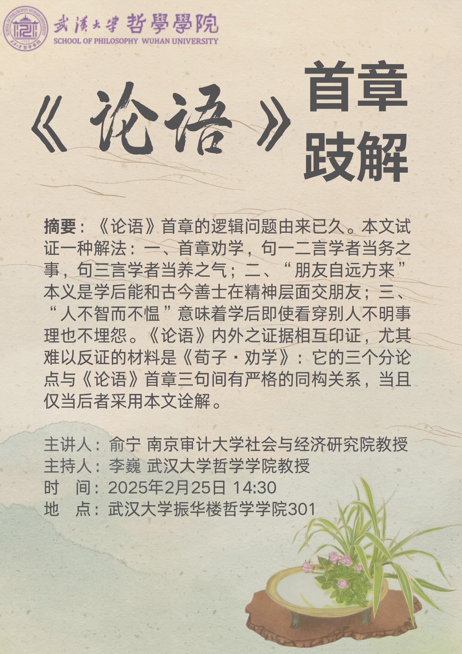 【2月25日】讲座预告 | 俞宁:《论语》首章跂解