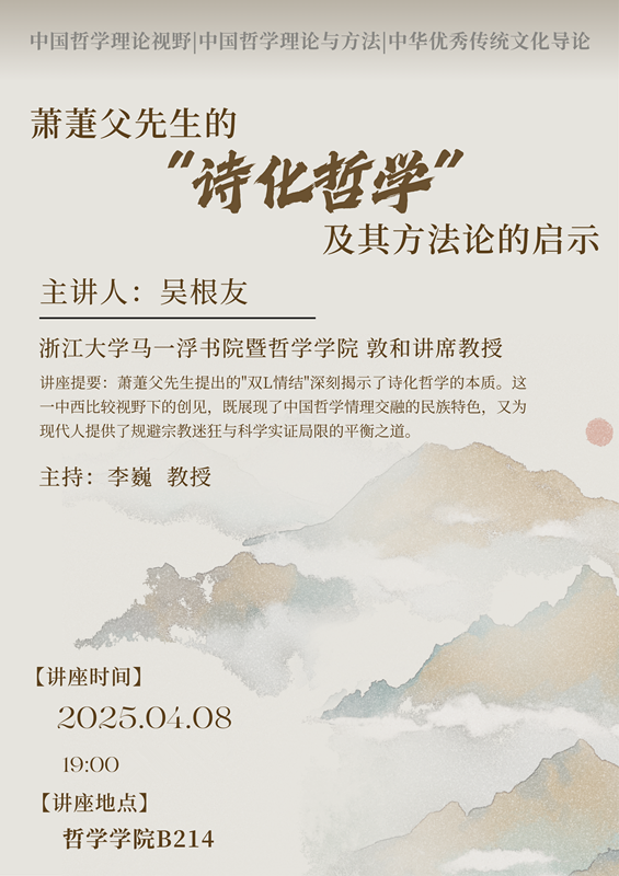 【4月8日】讲座预告 | 吴根友:萧萐父先生的“诗化哲学”及其方法论的启示