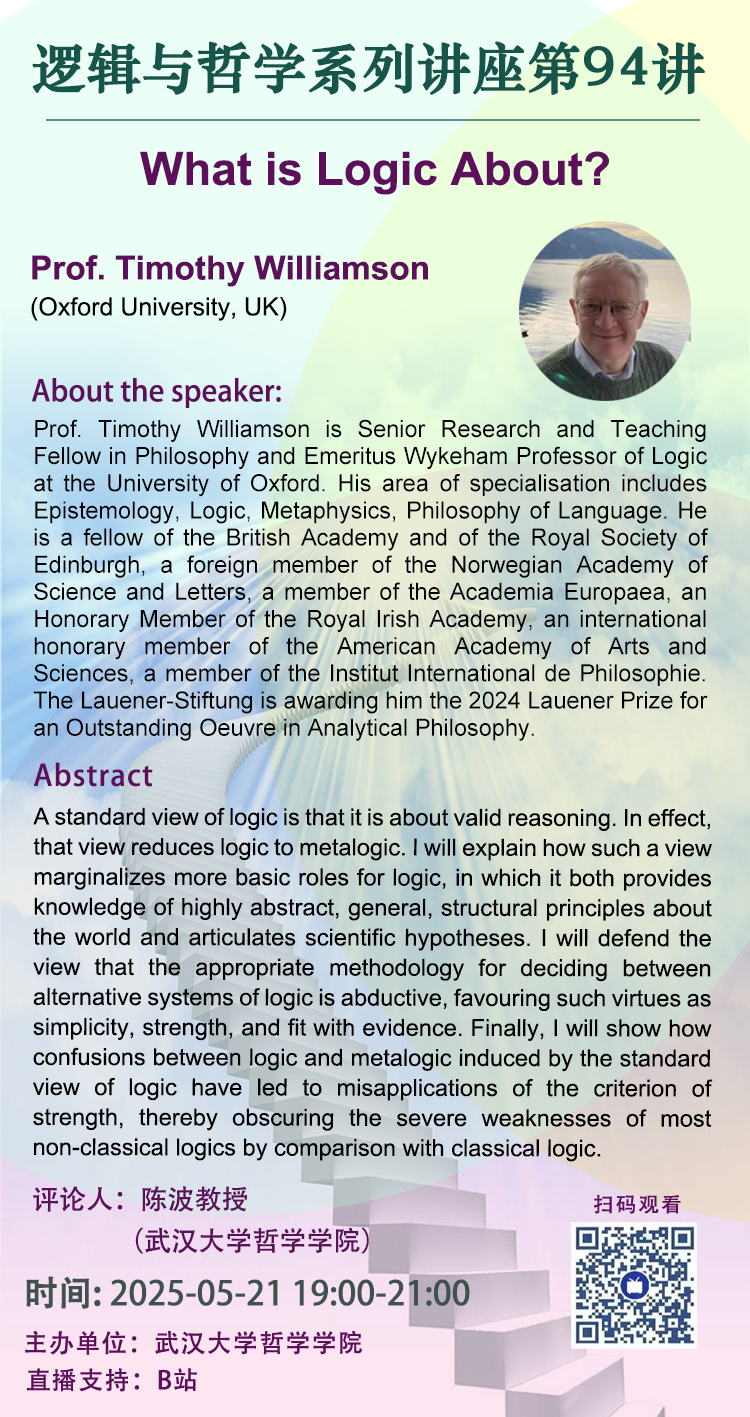 【5月21日】逻辑与哲学系列讲座第94讲| What is Logic About?