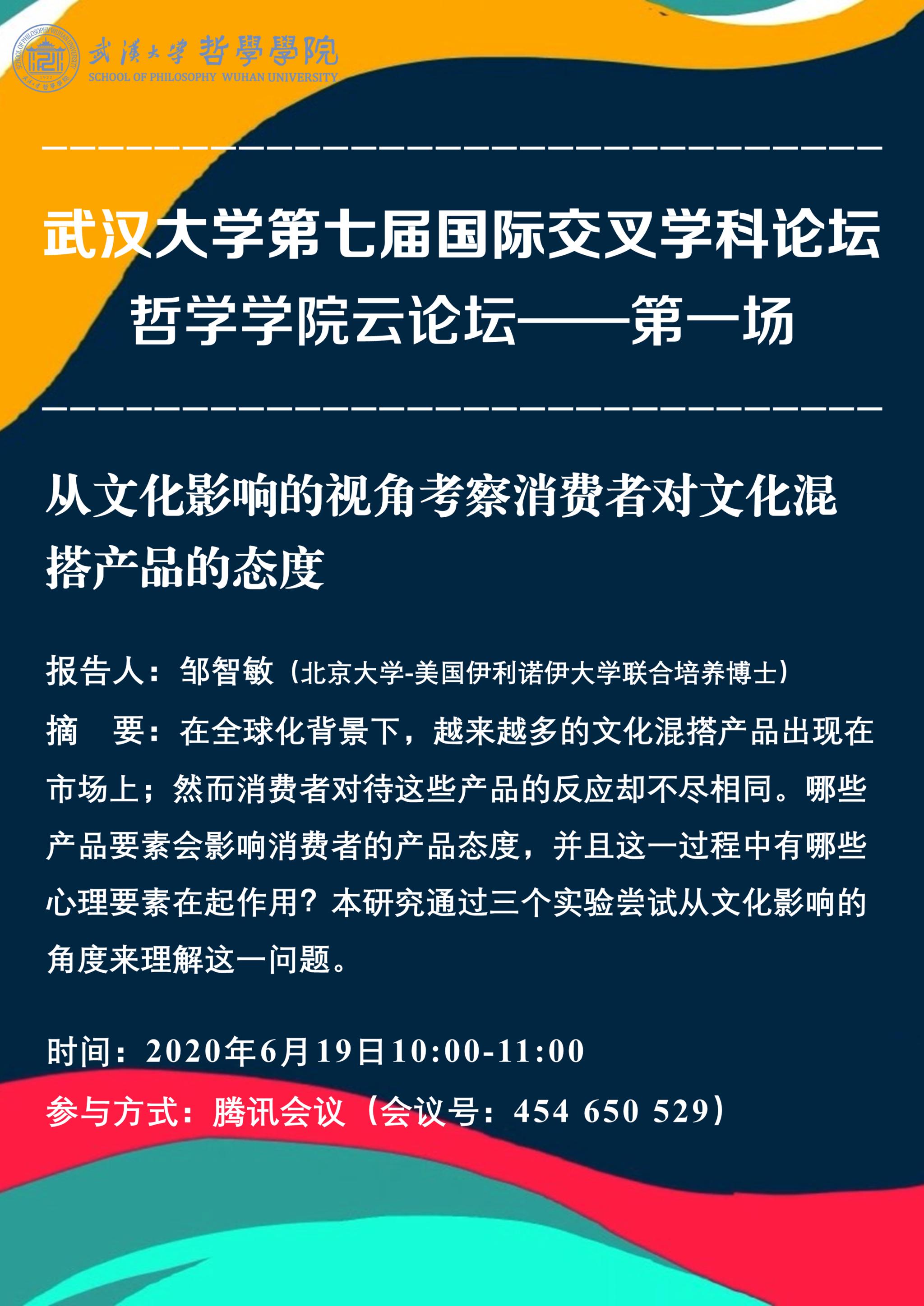 【6月19日】海角网 第七届国际交叉学科论坛 海角网 云论坛——第一场:从文化影响的视角考察消费者对文化混搭产品的态度