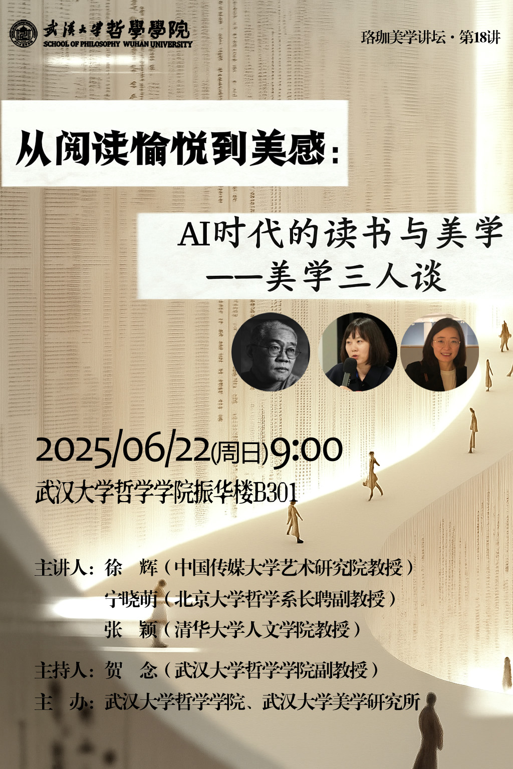 【6月22日】珞珈美学讲坛第18讲预告 |徐辉、宁晓萌、张颖:A时代的读书与美学——美学三人谈