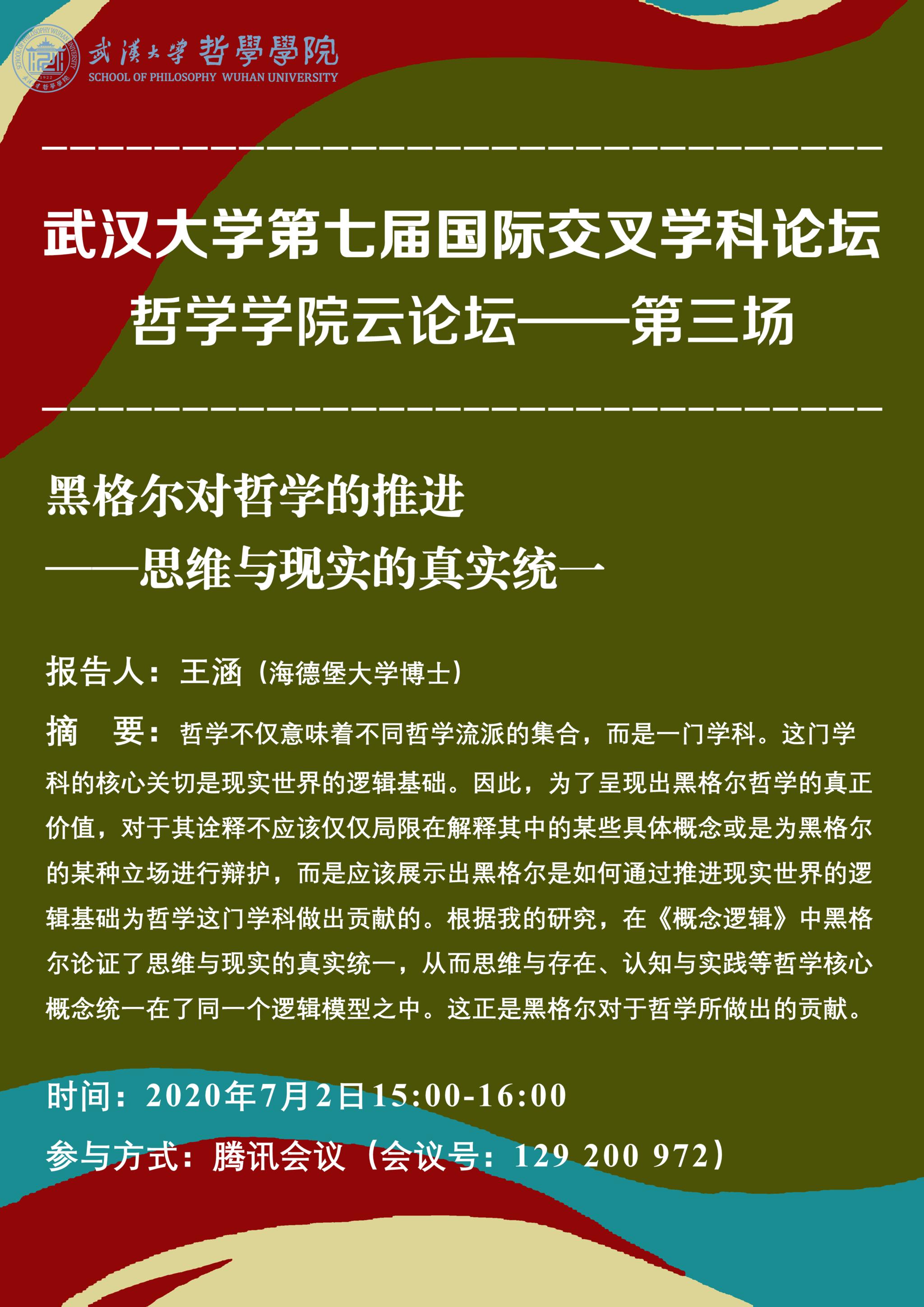 【7月2日】海角网 第七届国际交叉学科论坛 海角网 云论坛——第三场:黑格尔对哲学的推进——思维与现实的真实统一