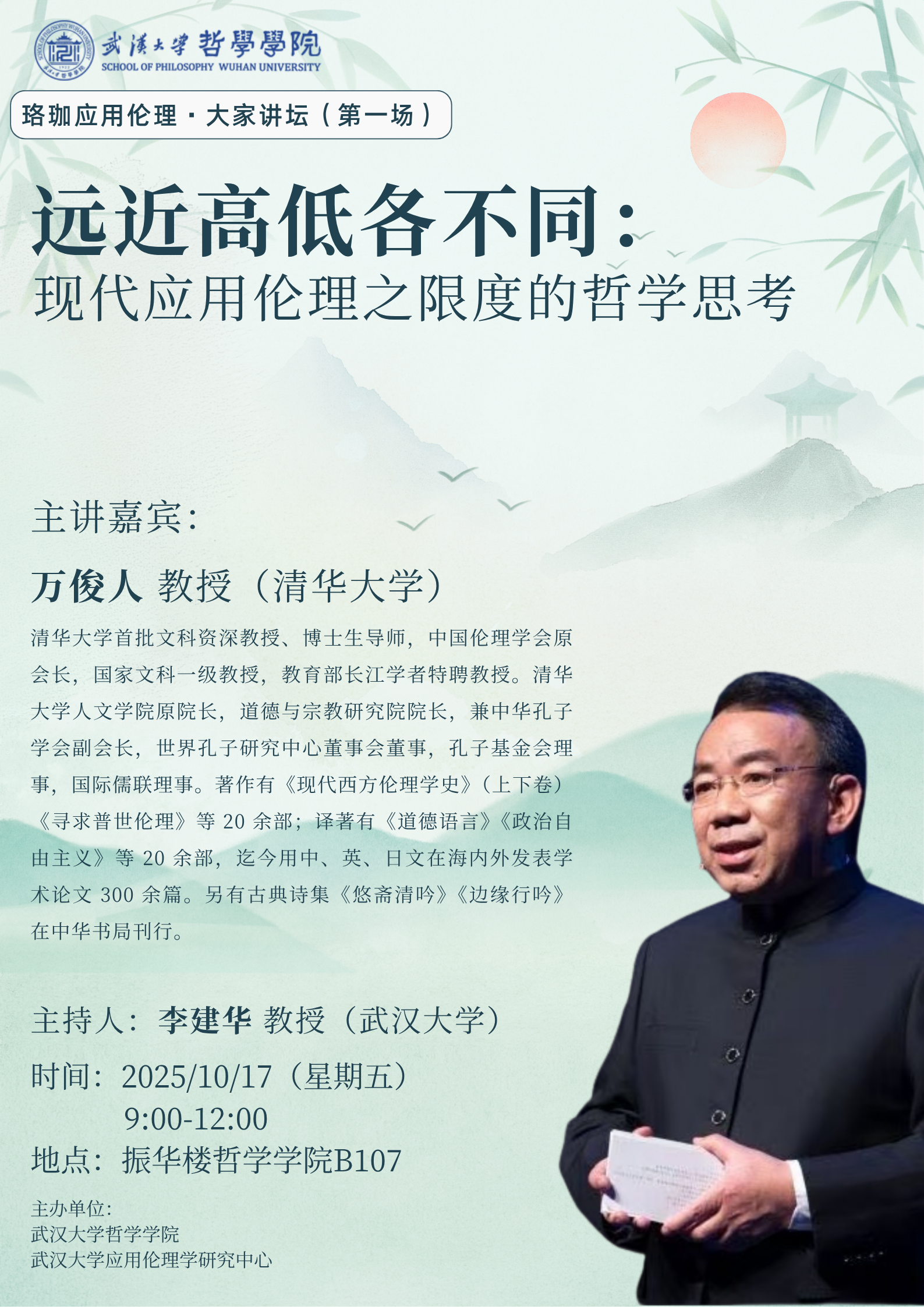 【10月17日】珞珈应用伦理 · 大家讲坛 (第一场) | 万俊人:远近高低各不同:现代应用伦理之限度的哲学思考