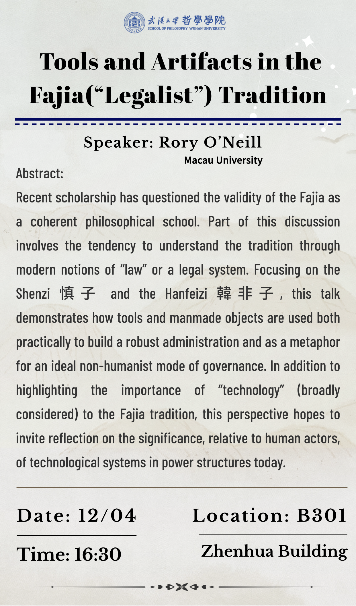 【12月4日】Tools and Artifacts in the Fajia 法家 (“Legalist”) Tradition