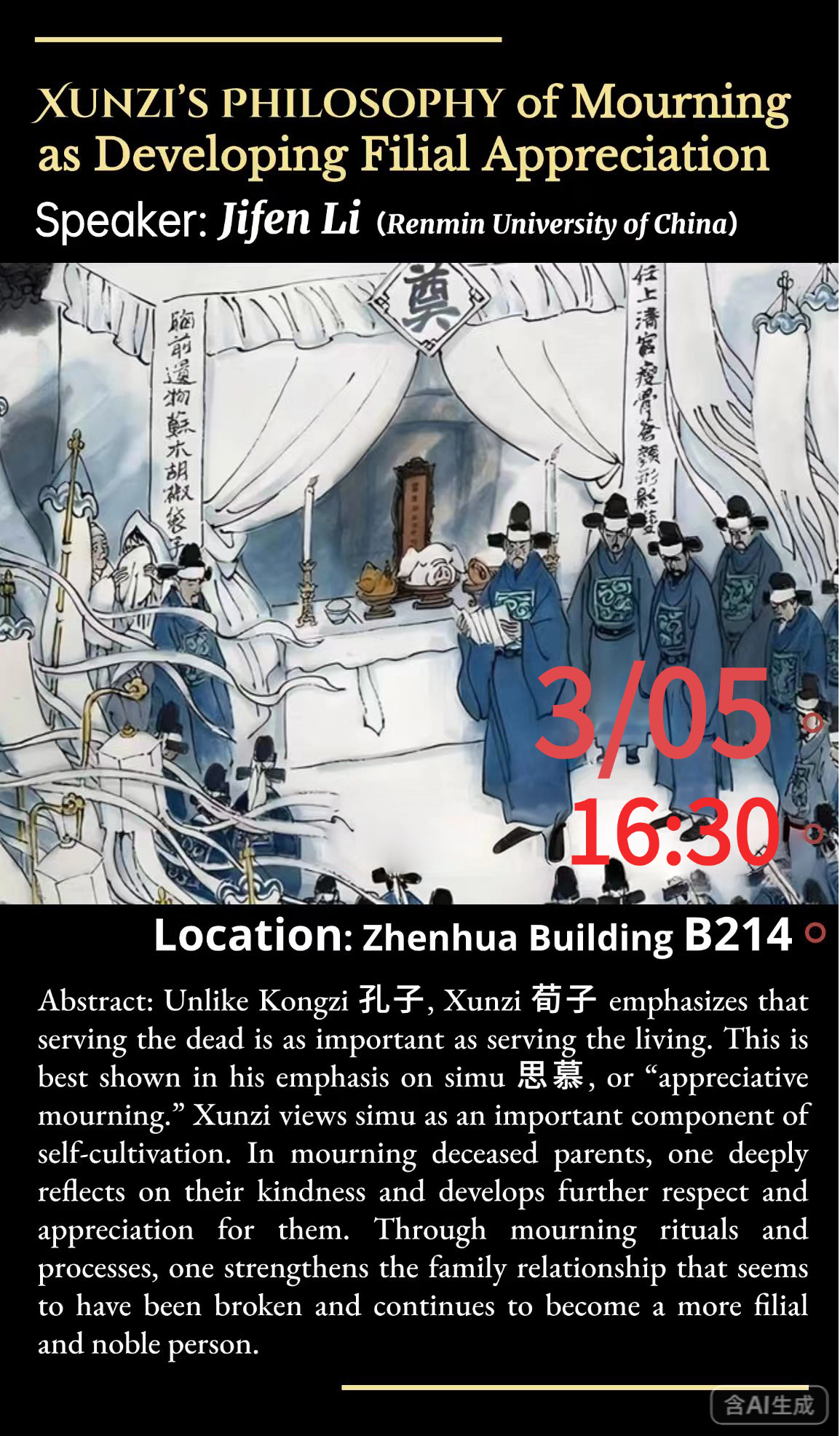【3月5日】Xunzi's Philosophy of Mourning as Developing Filial Appreciation