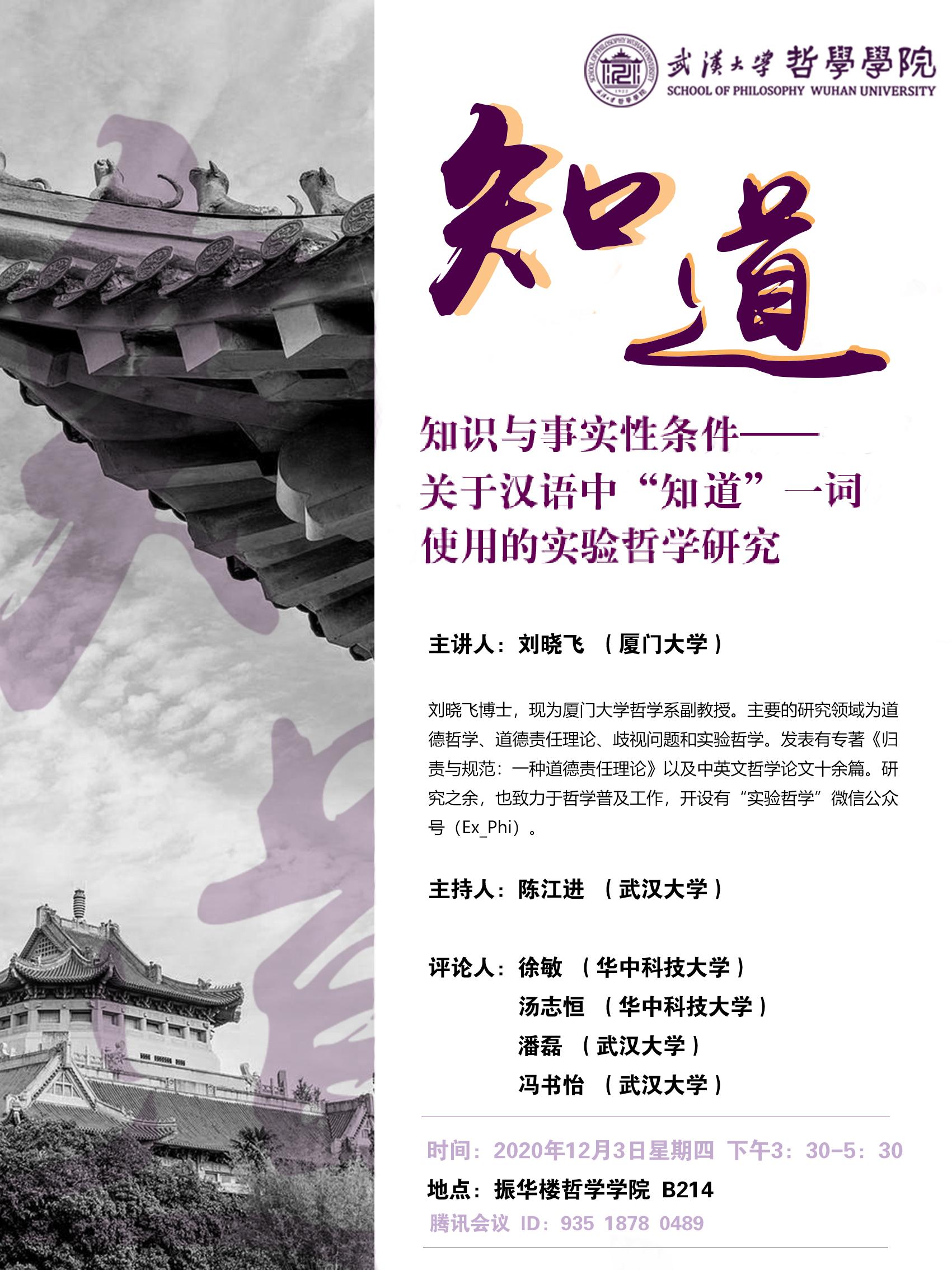 【12月3日】青年学人讲座第四讲:知识与事实性条件——关于汉语中“知道”一词使用的实验哲学研究